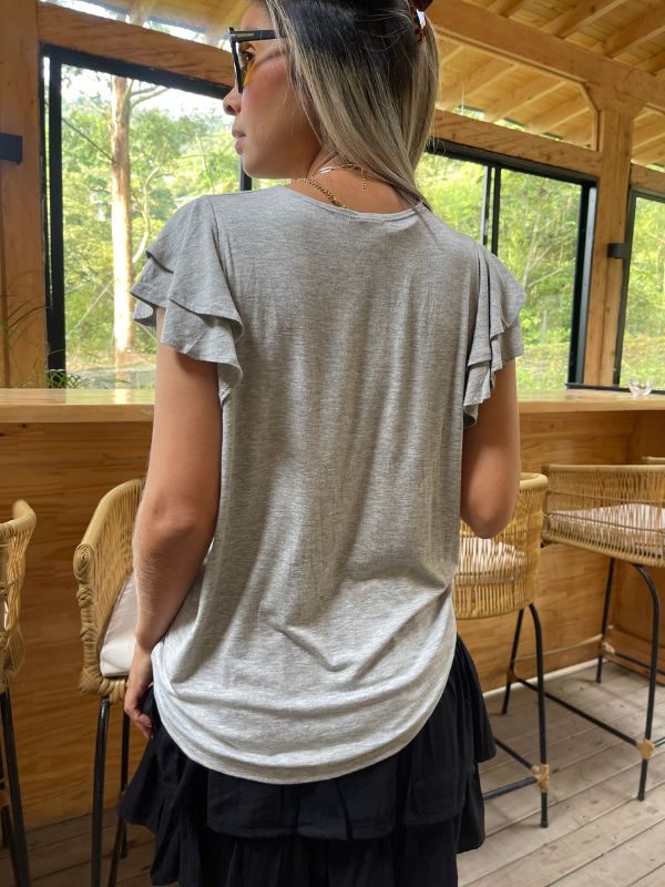 Blusa básica manga corta con detalle de boleros alrededor de la manga.