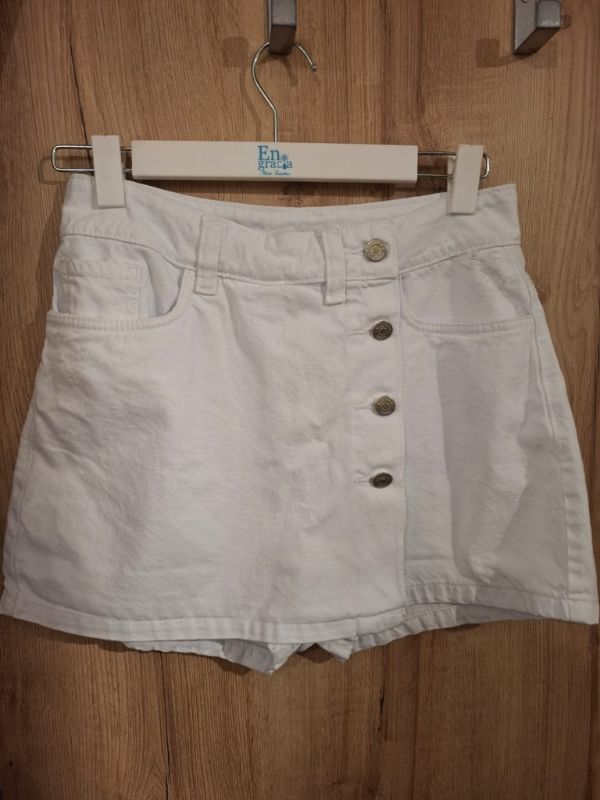 Falda short denim con botones en la parte delantera.